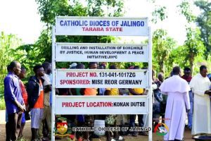 The Catholic Bishop of Jalingo Diocese, Most Rev Dr Charles Michael Hammawa has commissioned 2 boreholes in Kwanan Dutse and Hayin Fada villages in Ardo Kola Local Government Area of Taraba State.